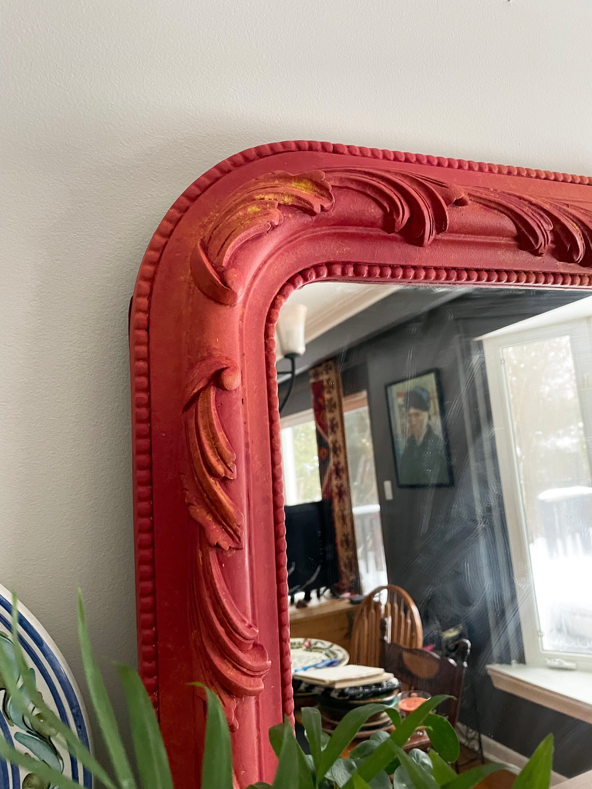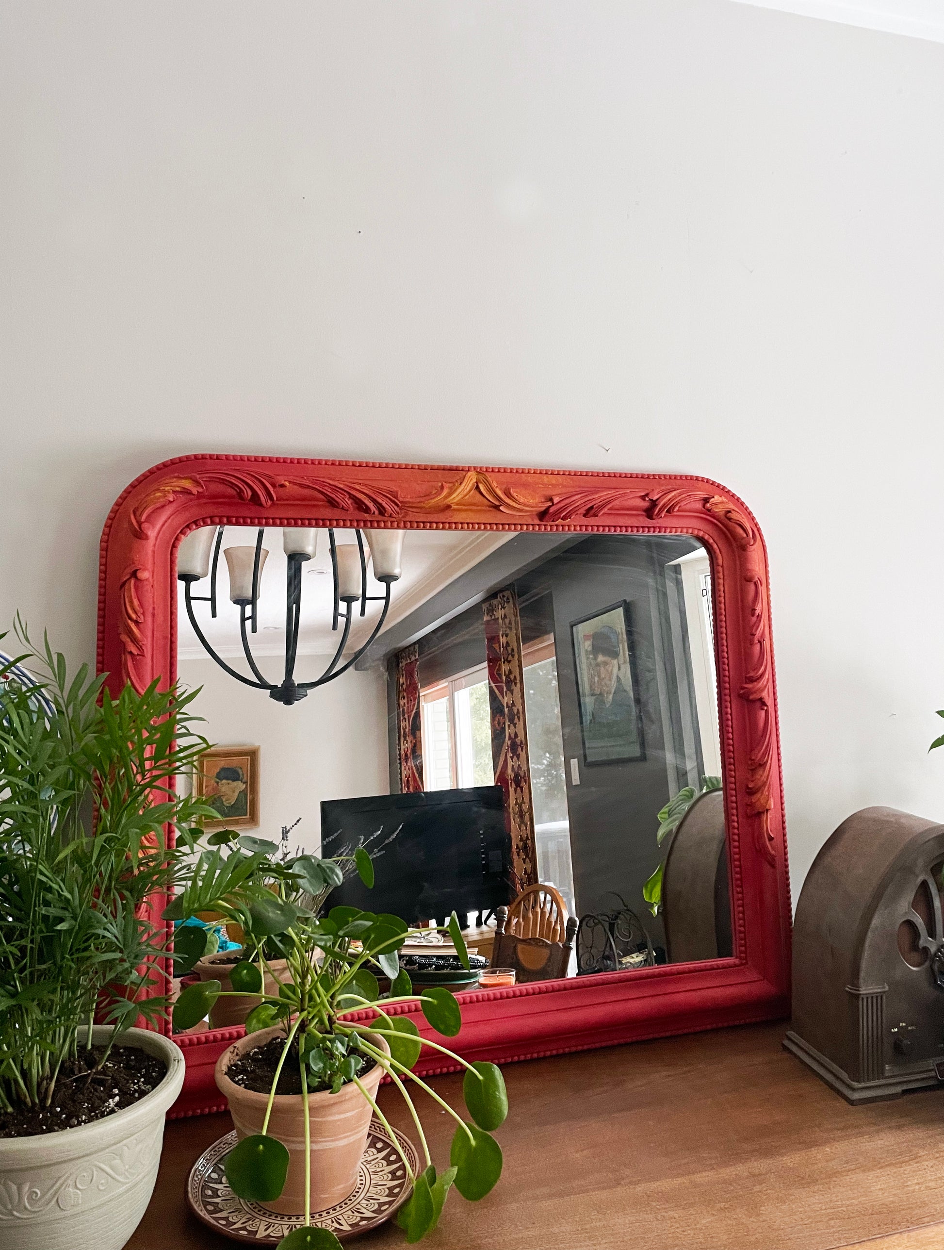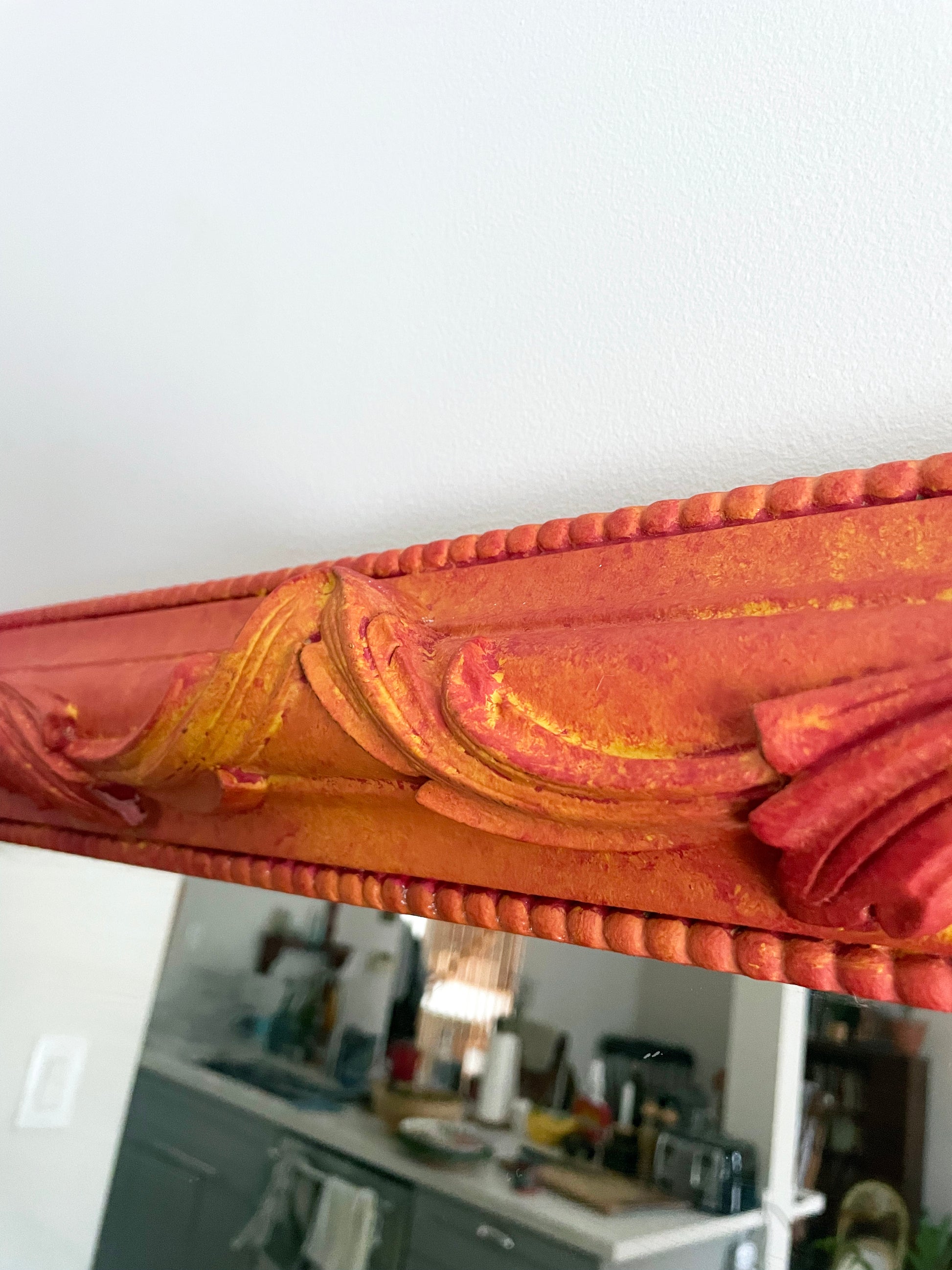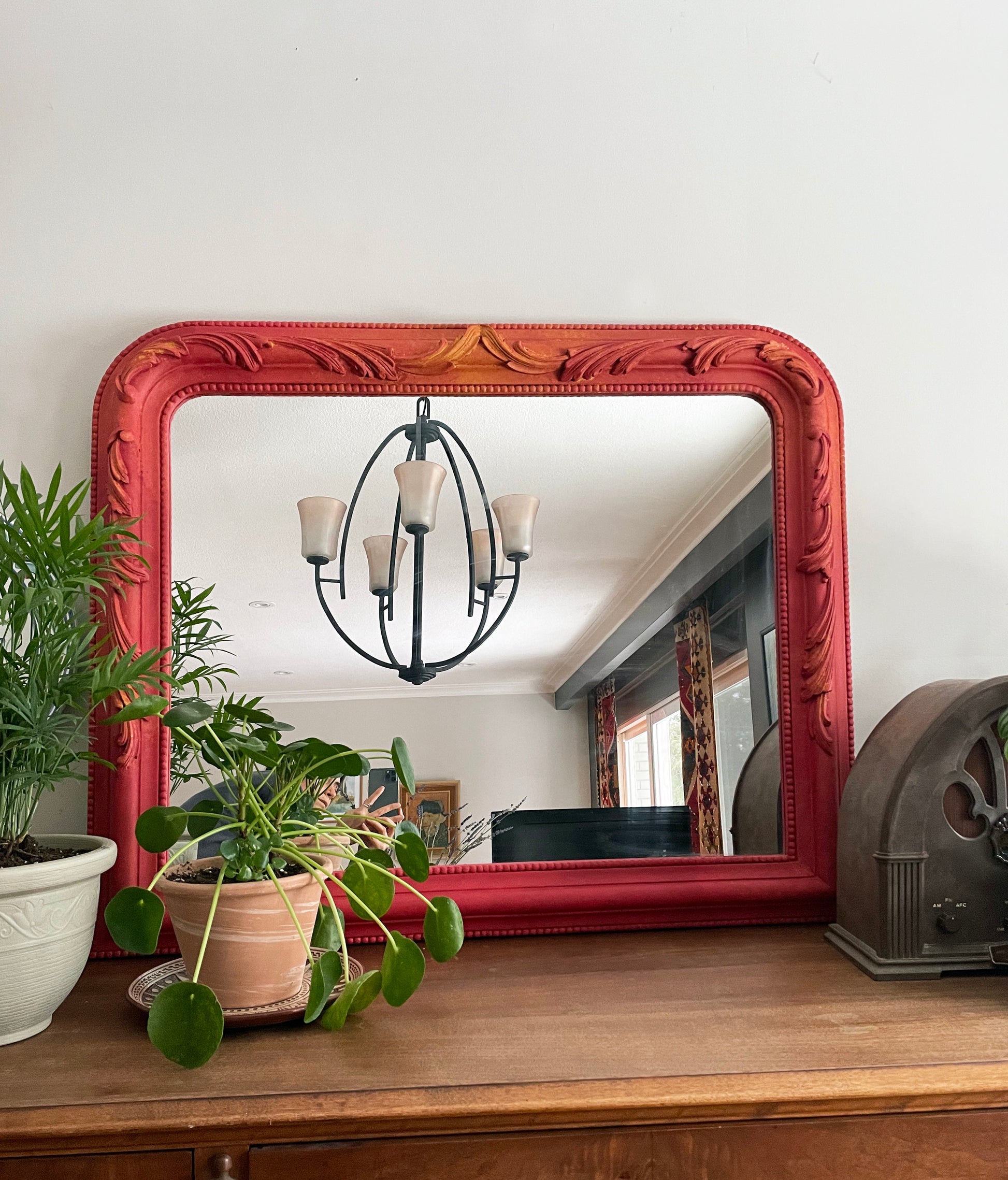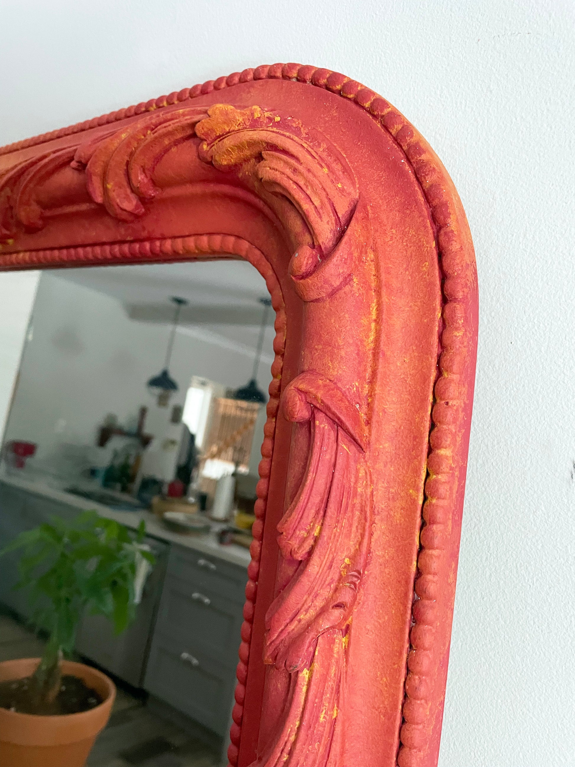 This Mirror has been restored and revived using different shades from Red to yellow.