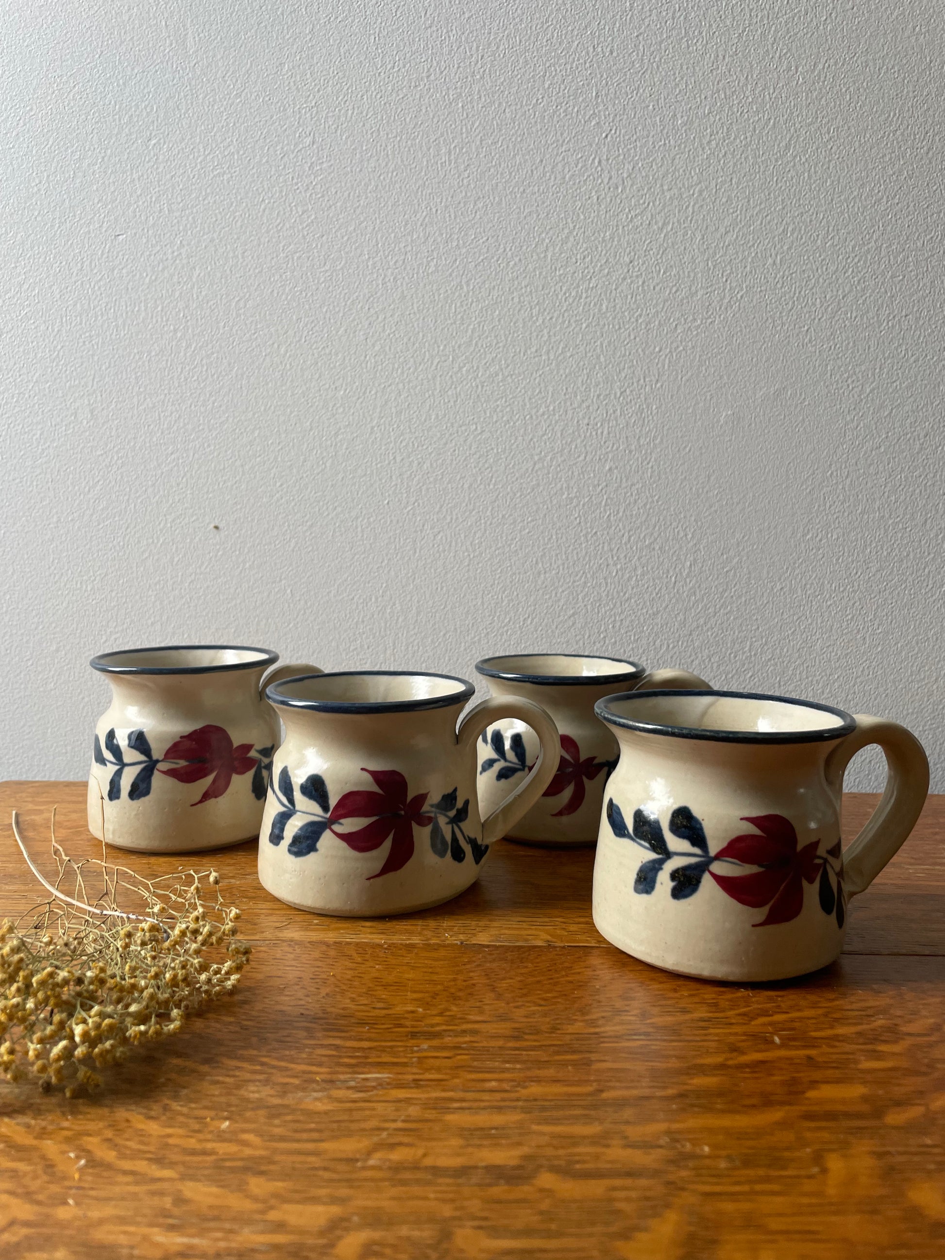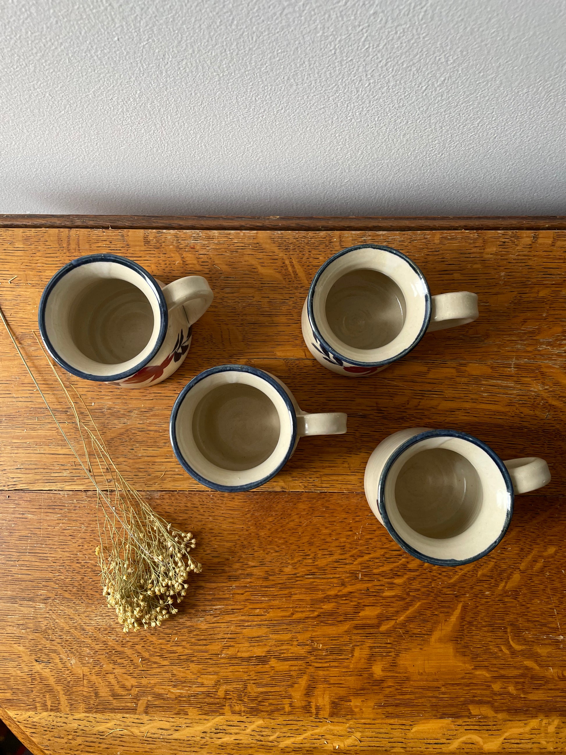 A set of 4 beautiful handmade and hand painted pottery mugs. Sold together.
